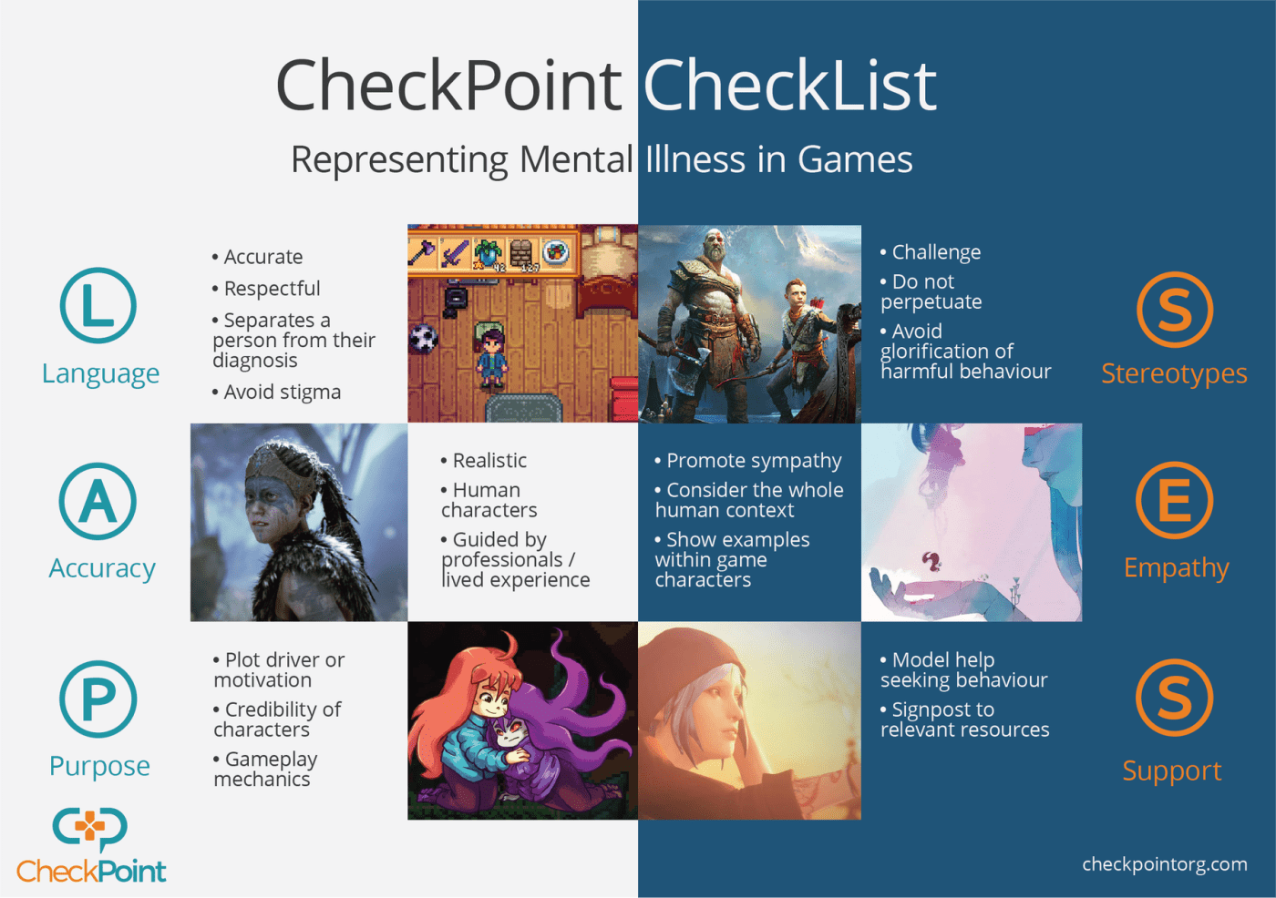 Pictured above: A checklist from CheckPoint’s website overviewing how to properly present mental illness in media.